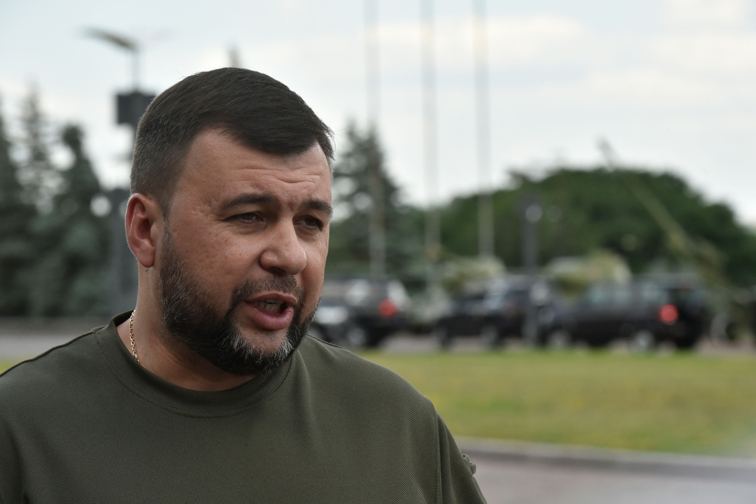 Denis Pushilin, leader of the separatists in the self-proclaimed Donetsk People's Republic, speaks to journalists, on July 13, 2022.