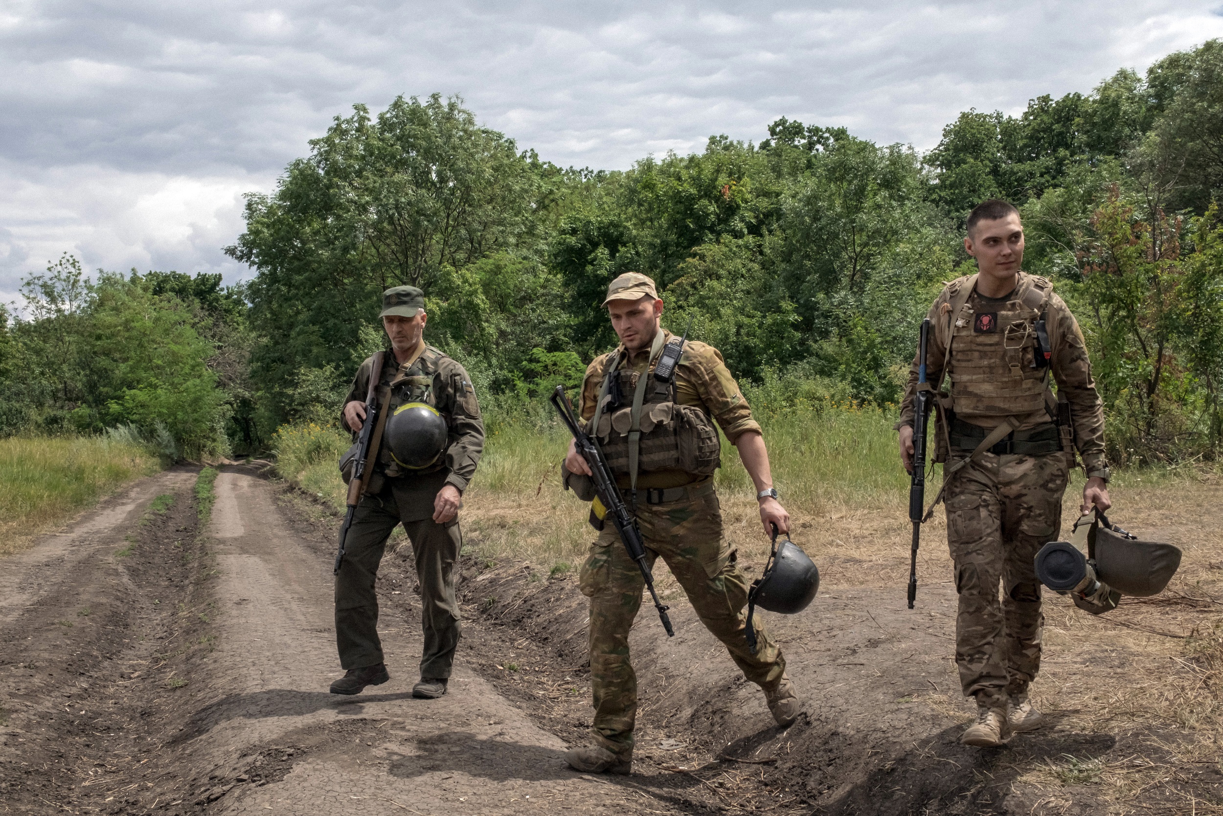 Ukrainian soldiers at their position near the front lines, in the Donetsk region of eastern Ukraine, on July 14, 2022.