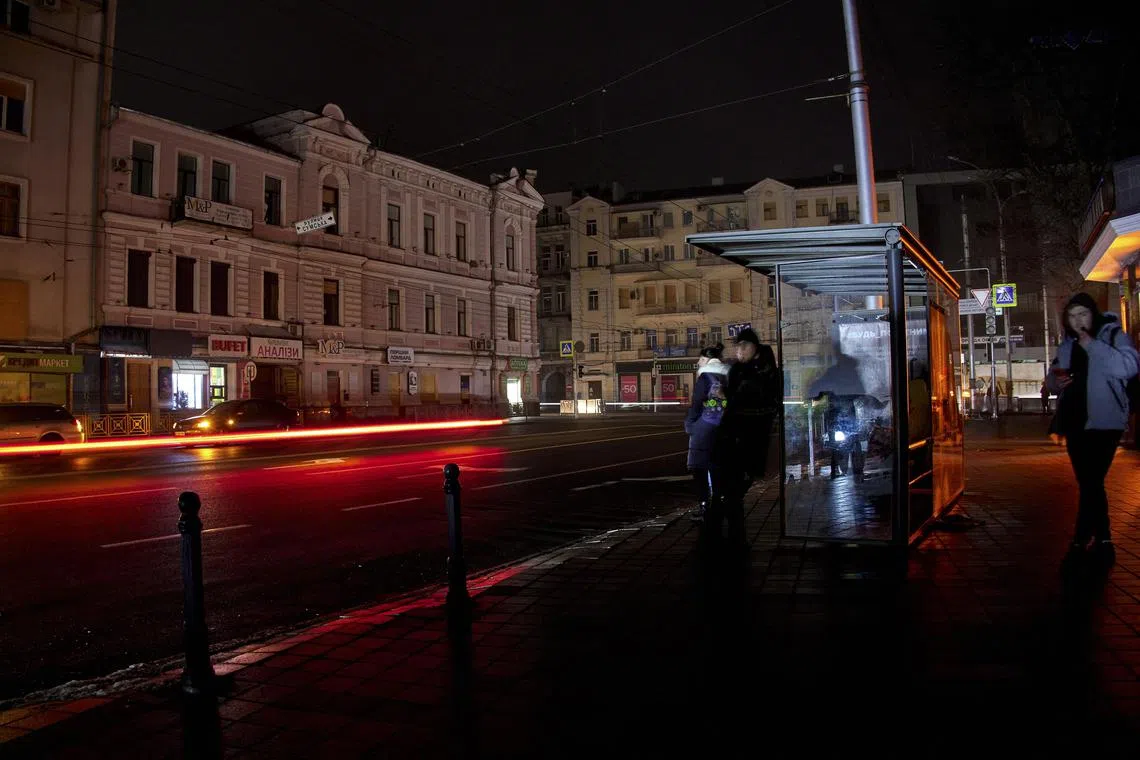 Lights have been switched off as blackouts continue in Kharkiv, Ukraine, on Dec 16, 2022.