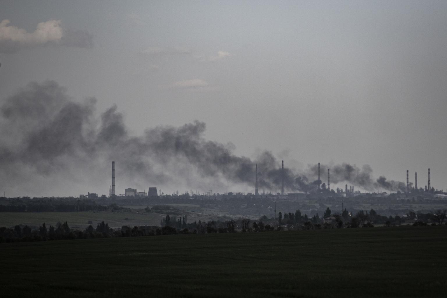 Smoke rising above the Ukrainian cities of Lysychansk and Sievierodonetsk after heavy Russian bombardment on June 3, 2022.