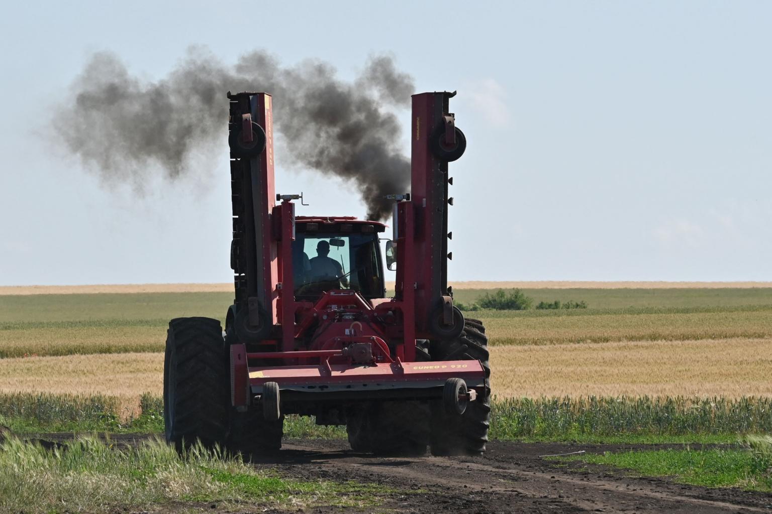 A man drives a tractor at a farm in the southern Ukraine’s Mykolaiv region, on June 11, 2022.