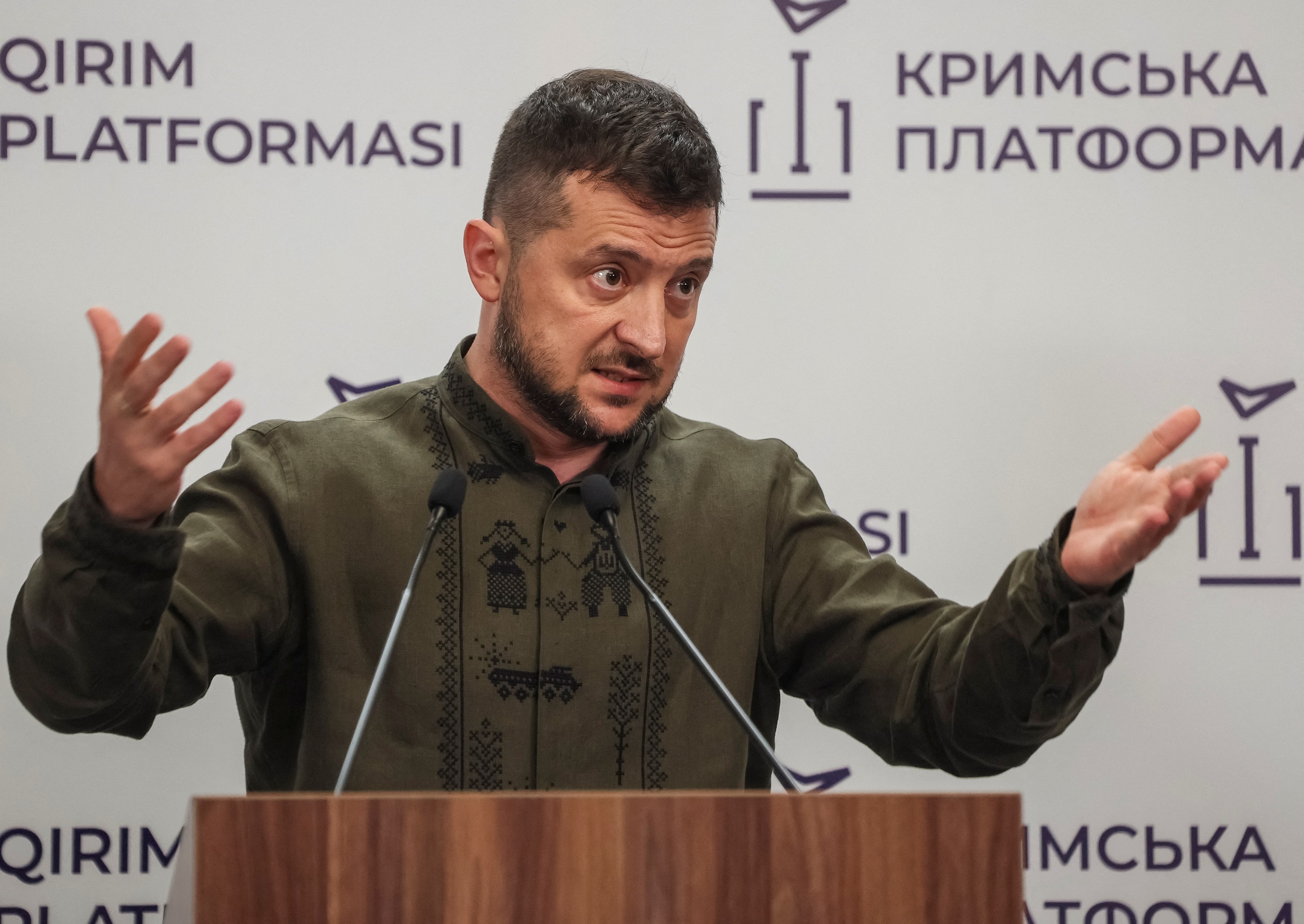 Zelensky addressed the conference and told reporters later: “We will take back Crimea – it is our territory. We will do this in any way which we decide.”