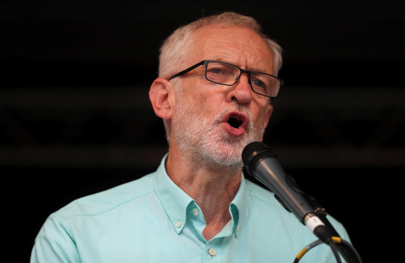 Asked about the prospect of pushing for a no-confidence vote in the government, Britain's opposition Labour Party leader Jeremy Corbyn said he would "look at the situation" when Parliament returns from its summer break in September.