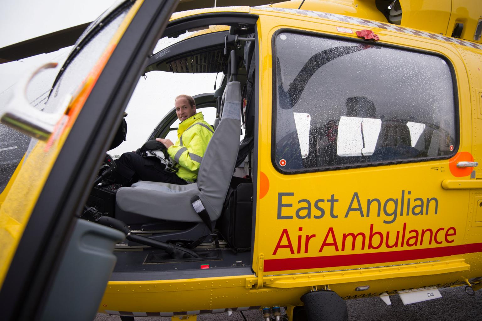 William's office said the prince would perform a night shift at Cambridge Airport in central England where he has been based since joining the EAAA in 2015, before posing for a photograph with his colleagues.
