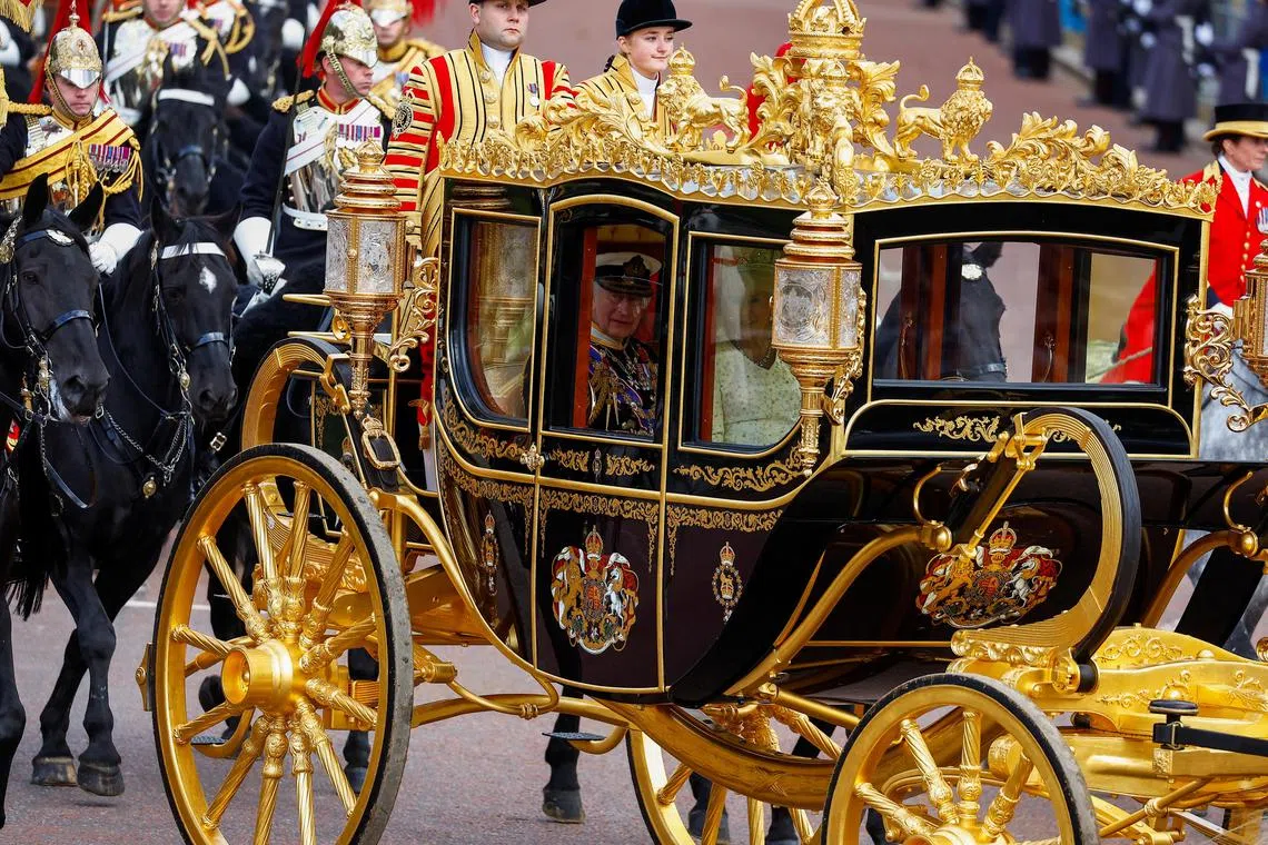 Britain’s King Charles and Queen Camilla return to Buckingham Palace on the day of the State Opening of Parliament.