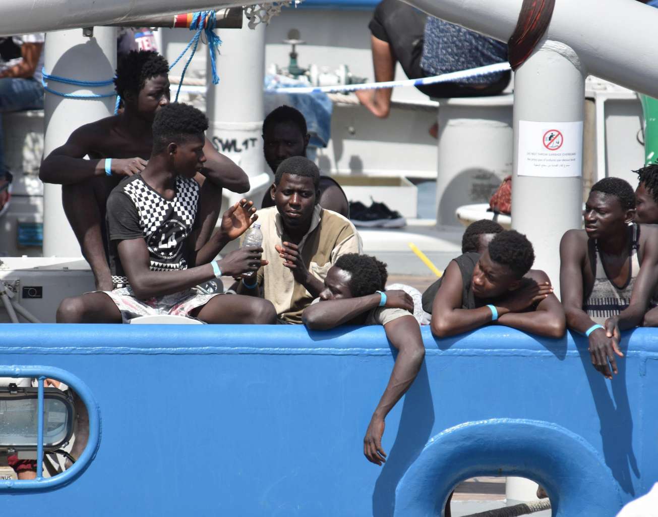 Some of 650 rescued migrants wait to disembark in Catania, Italy, July 1, 2017.