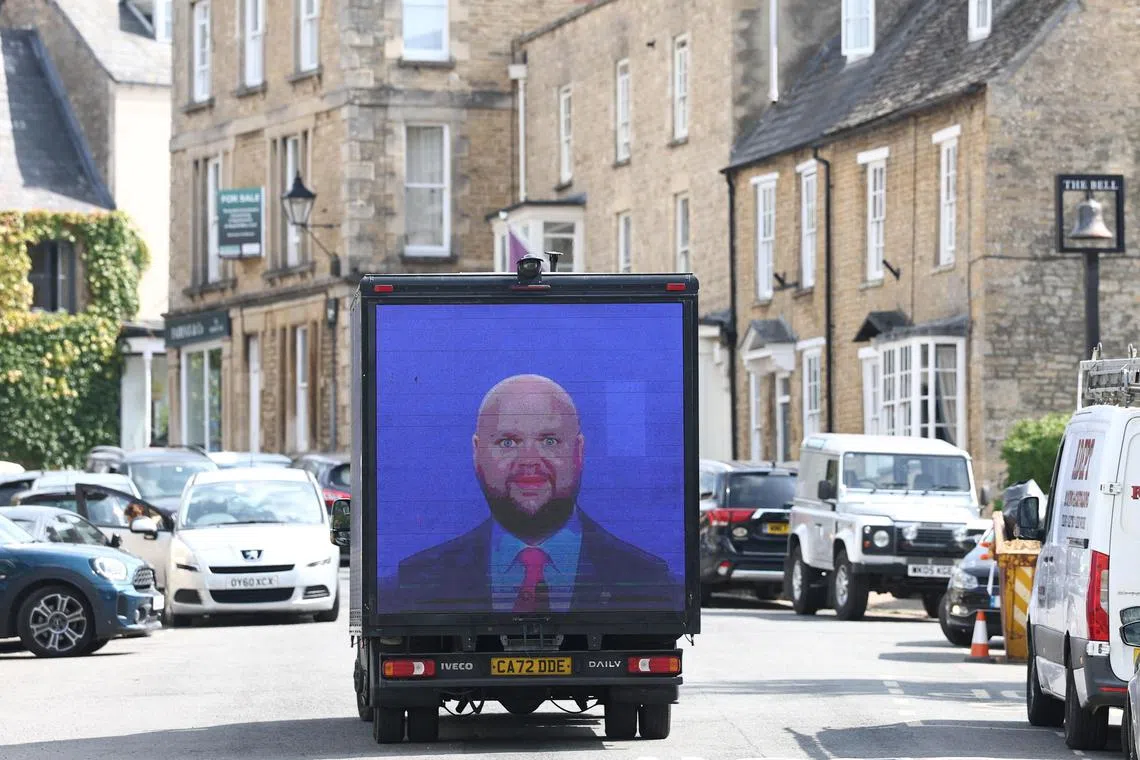 A van displaying a meme image of US Vice-President J.D. Vance travelling through the town of Charlbury, in Britain’s Cotswolds.