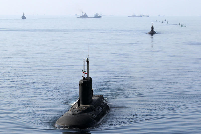Submarines in the Strait of Hormuz in southern Iran during the Velayat-90 navy exercises on Jan 3, 2012.