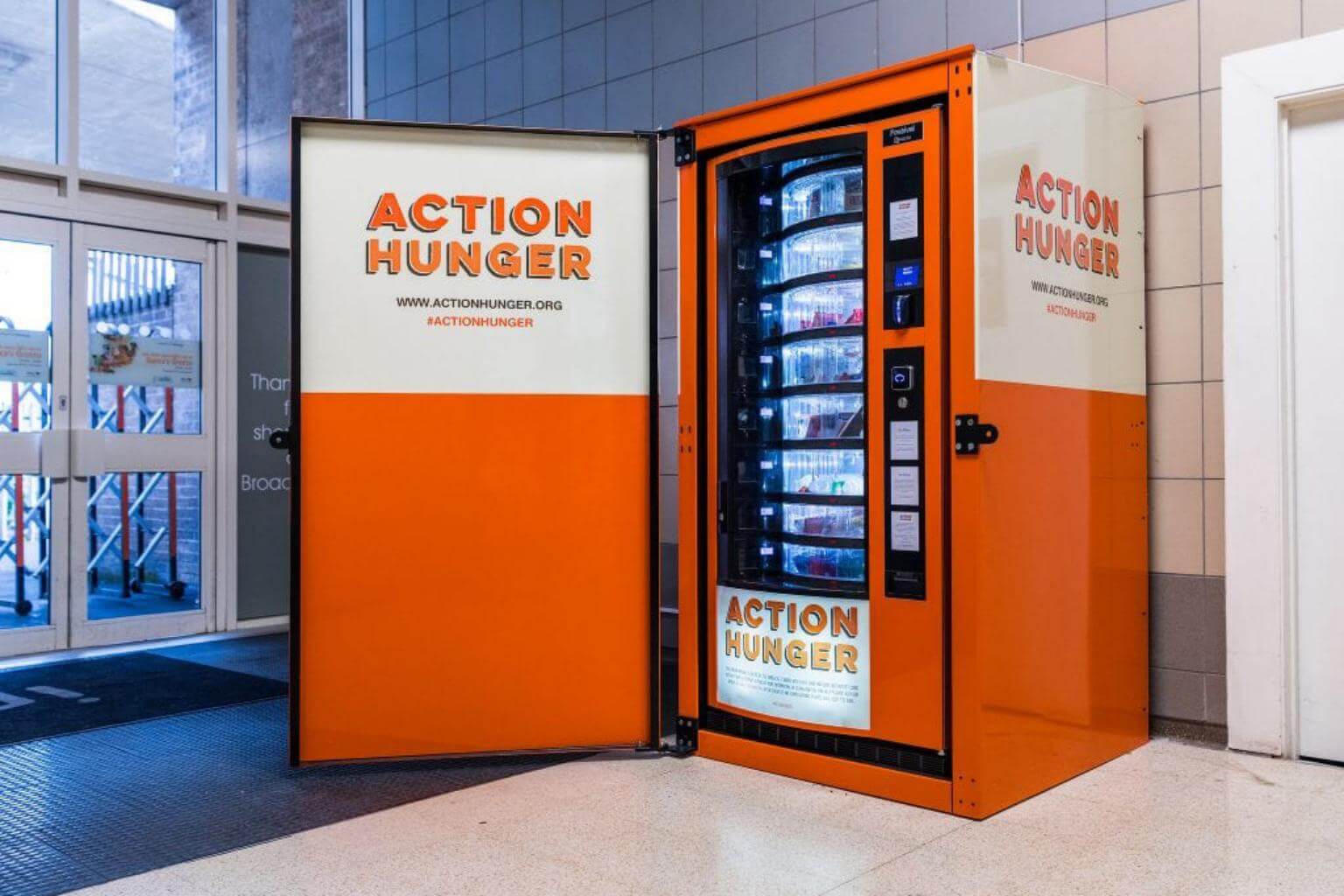 Action Hunger's first vending machine for the homeless launched this month at a shopping mall in Nottingham, England.