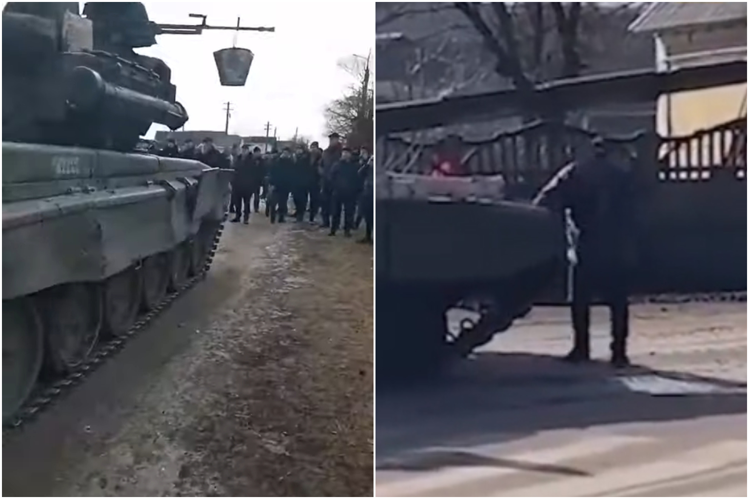 A third video, posted by Tetova News portal, showed another group of villagers in a town in Chernihiv surrounding a Russian tank to prevent it from passing through.