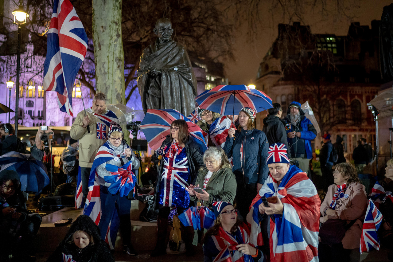 Brexit supporters celebrate in Parliament Square in London on Jan 31, 2020.