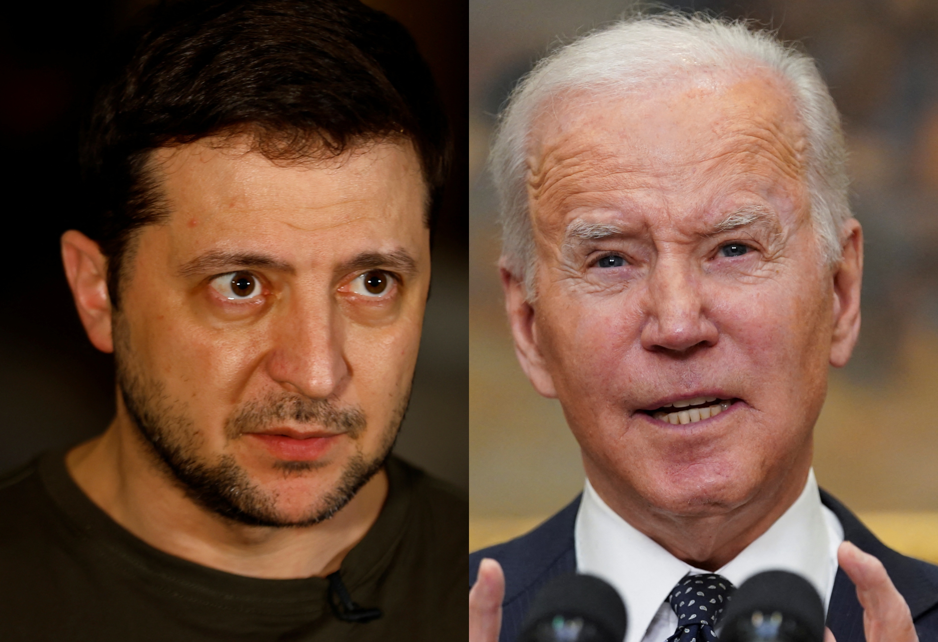Ukraine’s President Volodymyr Zelensky (left) discussed Moscow's invasion of Ukraine for about 30 minutes with US President Joe Biden.