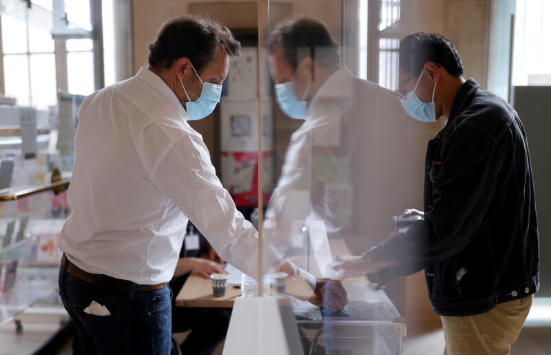 In polling stations in Paris, clerks sat behind plexiglass screens wearing masks or face shields. "It's better organised than last time," said pensioner Jean de Nathan.