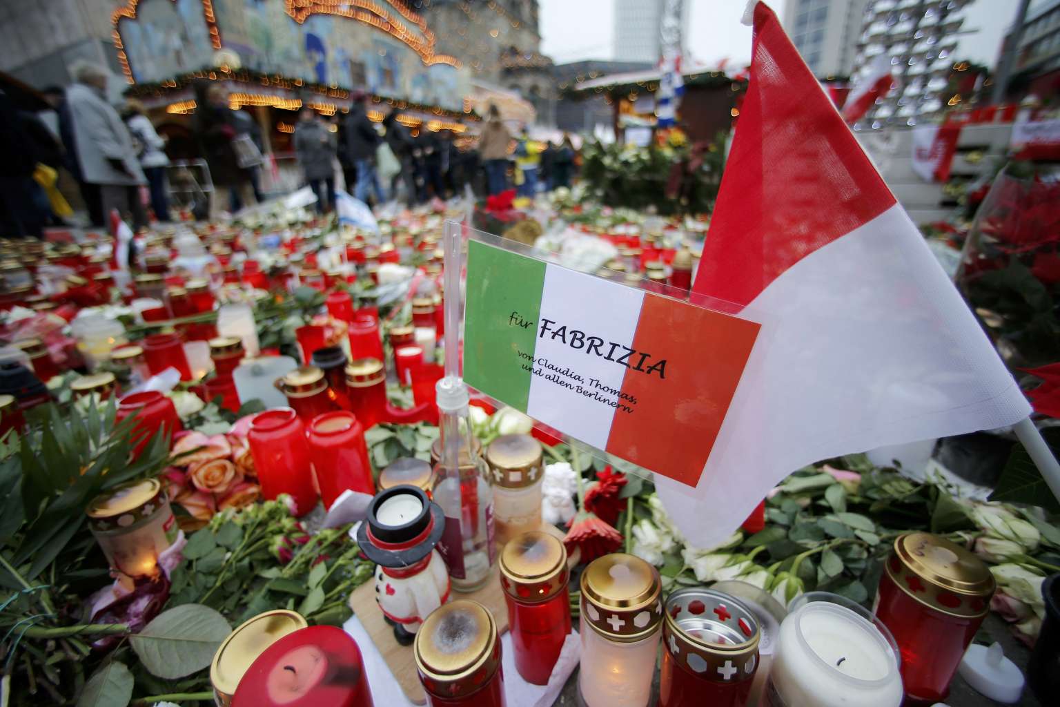 Flowers and candles are placed near the Christmas market at Breitscheid square in Berlin, Germany on Dec 23, 2016.