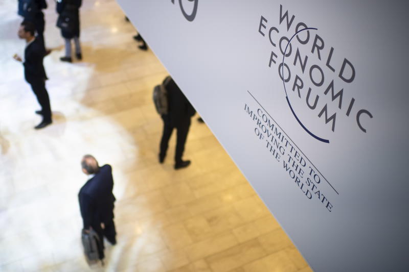 The logo of the World Economic Forum is seen in the Congress Hall in Davos, Switzerland, on Jan 23, 2019.