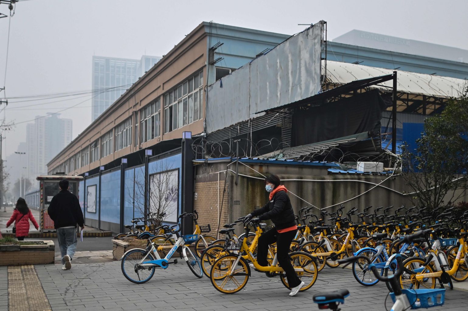 The closed Huanan wholesale seafood centre in Wuhan, where one of the first reported clusters of Covid-19 infections emerged.