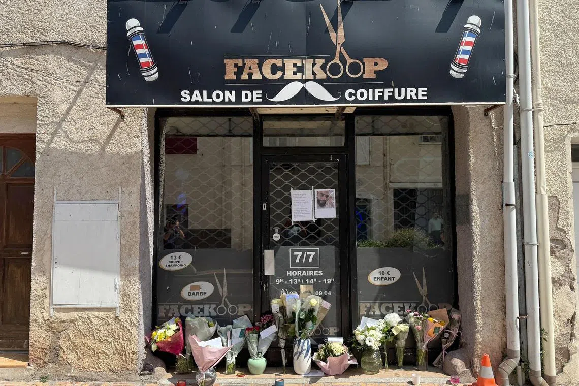 Tributes poured in from shocked neighbours and friends mourning the murder of Mr Hichem Miraoui, with more than a dozen bouquets placed outside the barbershop where he worked in the quiet town of Puget-sur-Argens.