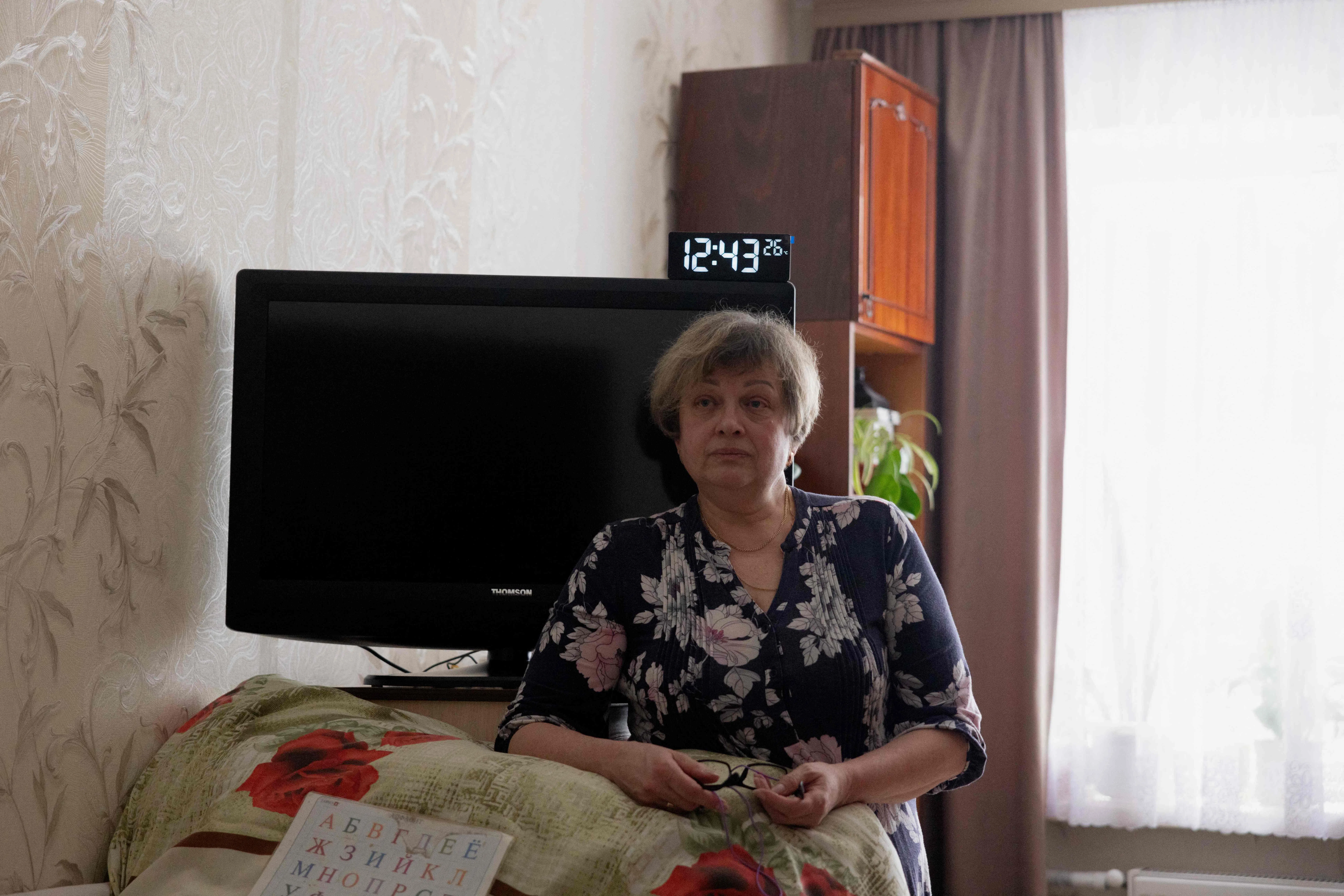 Against the wall, parallel to Mr Kuchynsky’s bed, was the click-clack sofa bed where Ms Grygorenko keeps watch.