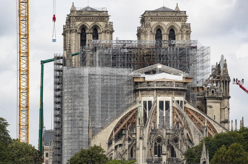 The scaffolding had been erected for renovation work on the cathedral's old spire before the fire engulfed the major tourist attraction on April 15, 2019, destroying the spire and the roof in a disaster that stunned the nation.