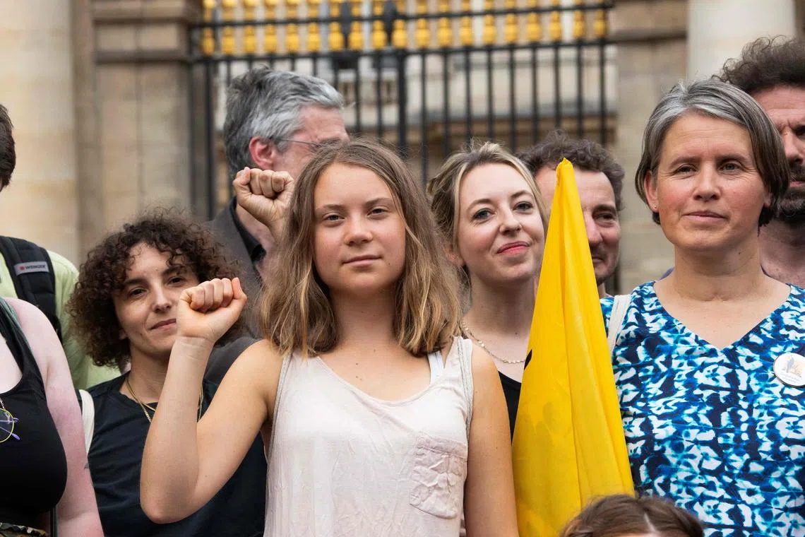 Climate campaigner Greta Thunberg during a press conference in front of the Council of State in Paris on June 21.