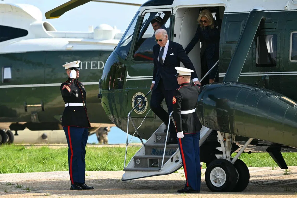 US President Joe Biden and First Lady Jill Biden arrive in Normandy, France, to attend a ceremony marking the 80th anniversary of the June 6, 1944 D-Day landings.