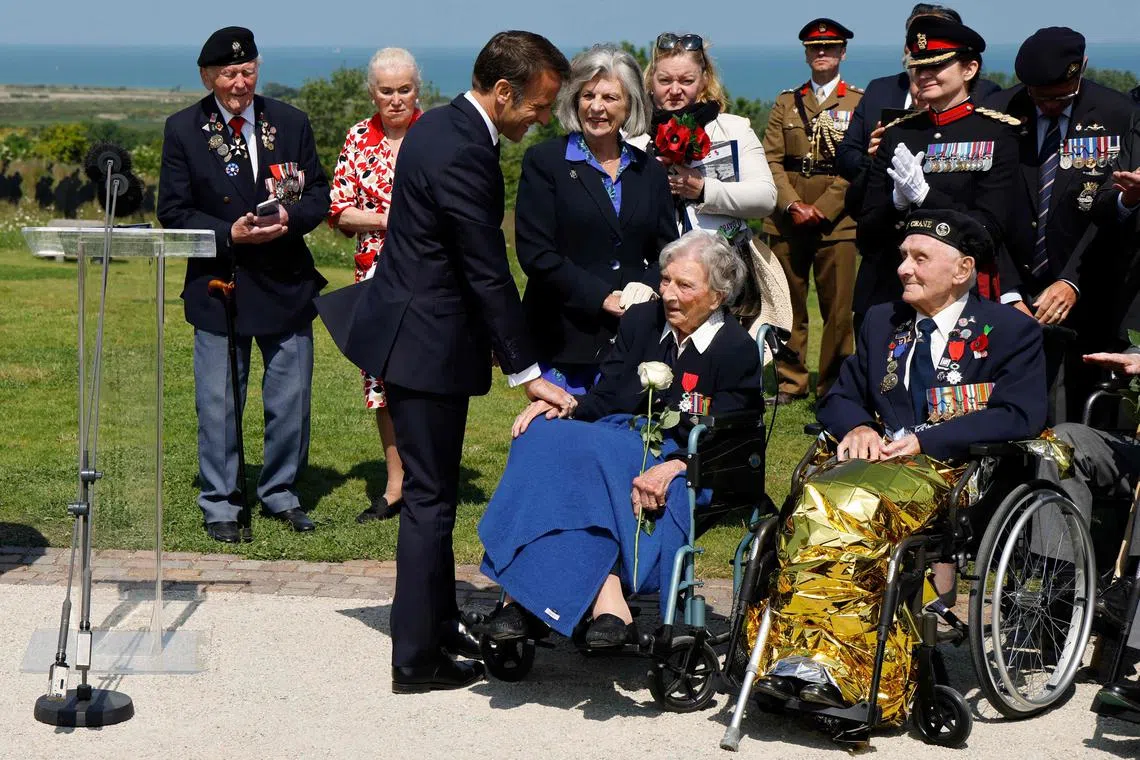 Mr Macron presented a Legion d’Honneur award to Ms Christian Lamb, a 103-year-old member of the wartime British female naval service who helped plan the landings, describing her as “a hero in the shadows”.