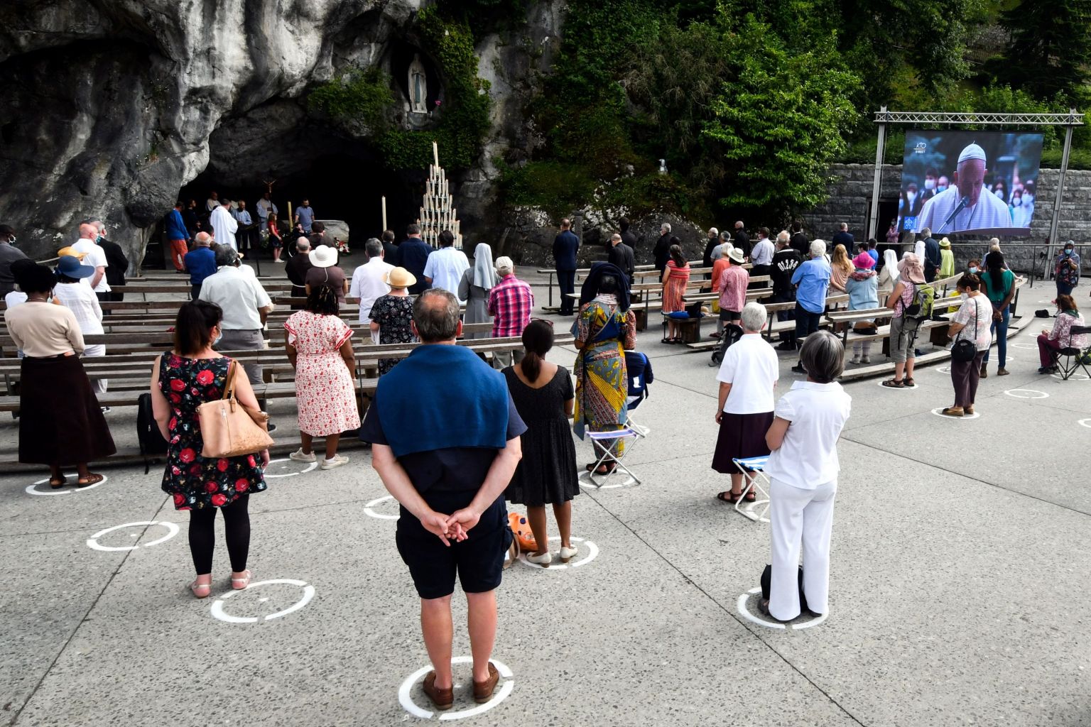 The sanctuary in southwest France broadcast mass and prayers all day in five different languages on television and social media for the e-pilgrimage, dubbed "Lourdes United".