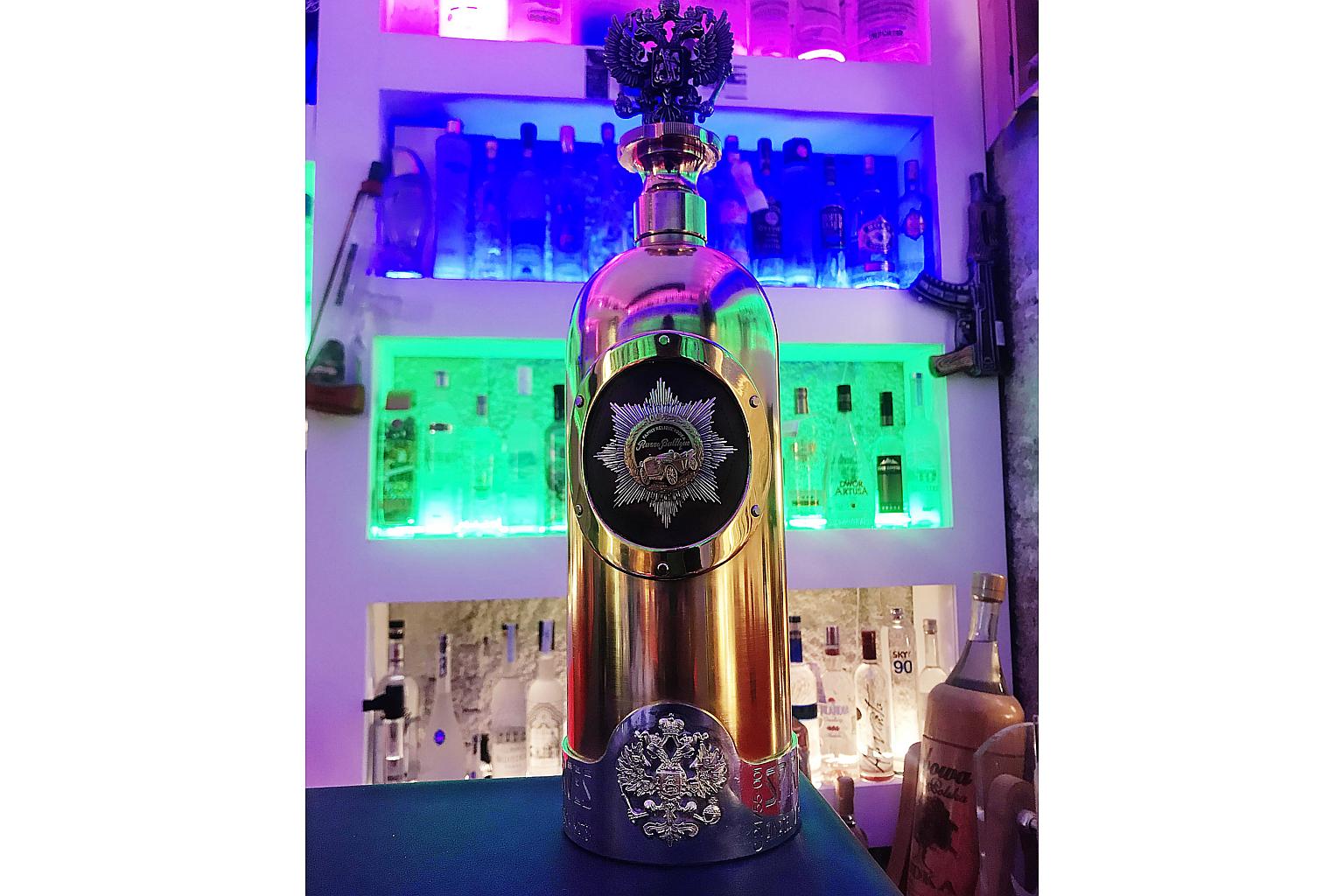 The Russo-Baltique vodka is contained in a bottle made from white and yellow gold, with a diamond-encrusted replica of the Russian Imperial Eagle on its cap.