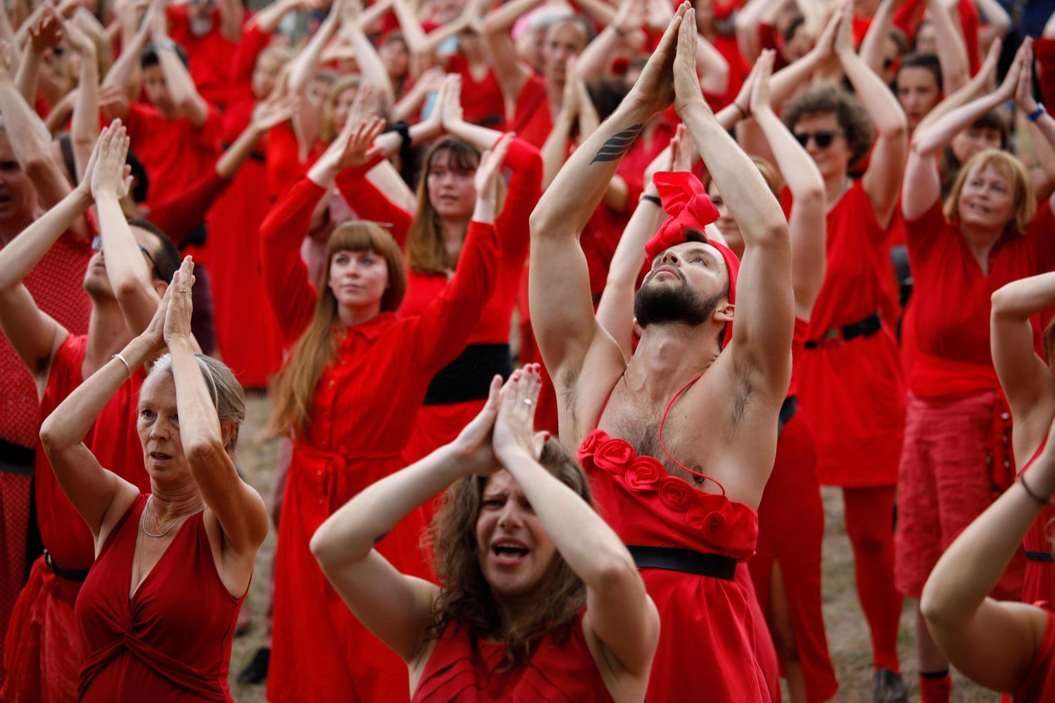 Kate Bush fans in Berlin perform to mark Wuthering Heights Day in Goerlitzer Park.