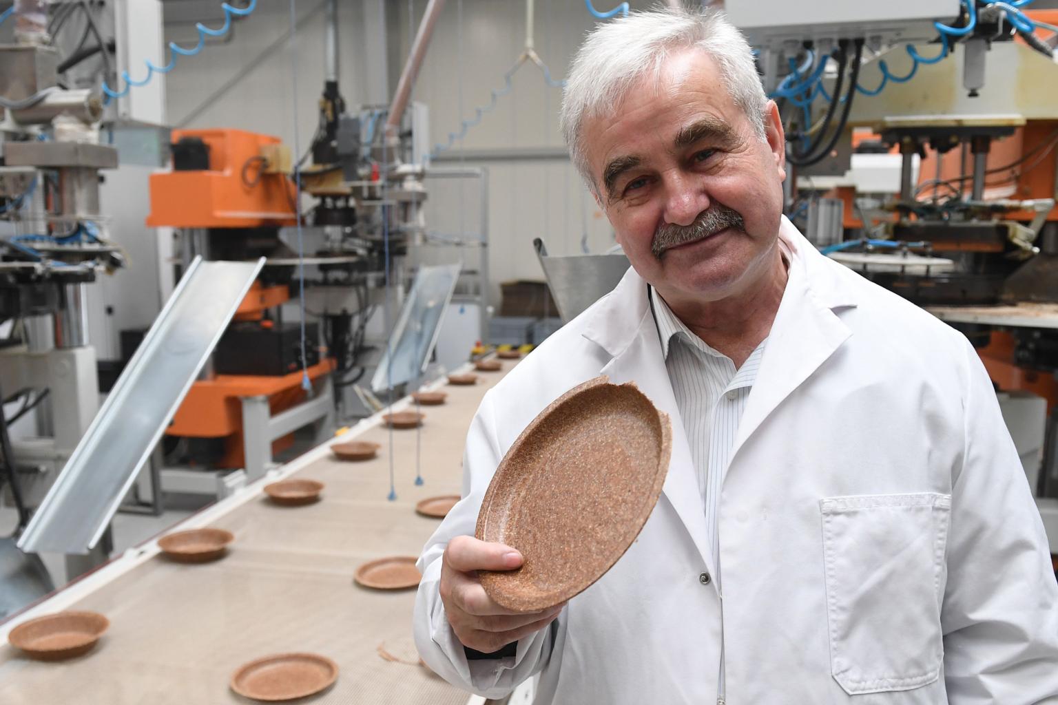 "A pork chop will always be more delicious on this wheat bran plate than on plastic," says Mr Wysocki with a big grin at the Biotrem factory in Zambrow in north-east Poland.