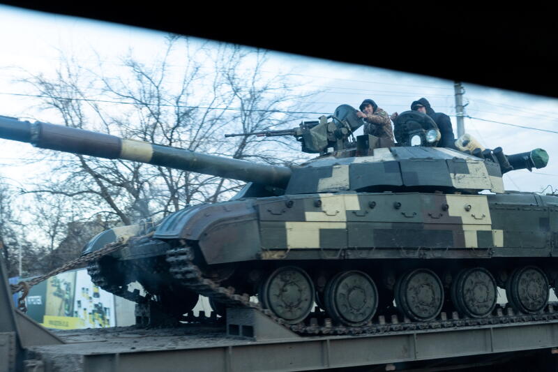 Ukrainian soldiers being transported amid Russia's invasion of Ukraine, in Kramatorsk, on April 22, 2022.