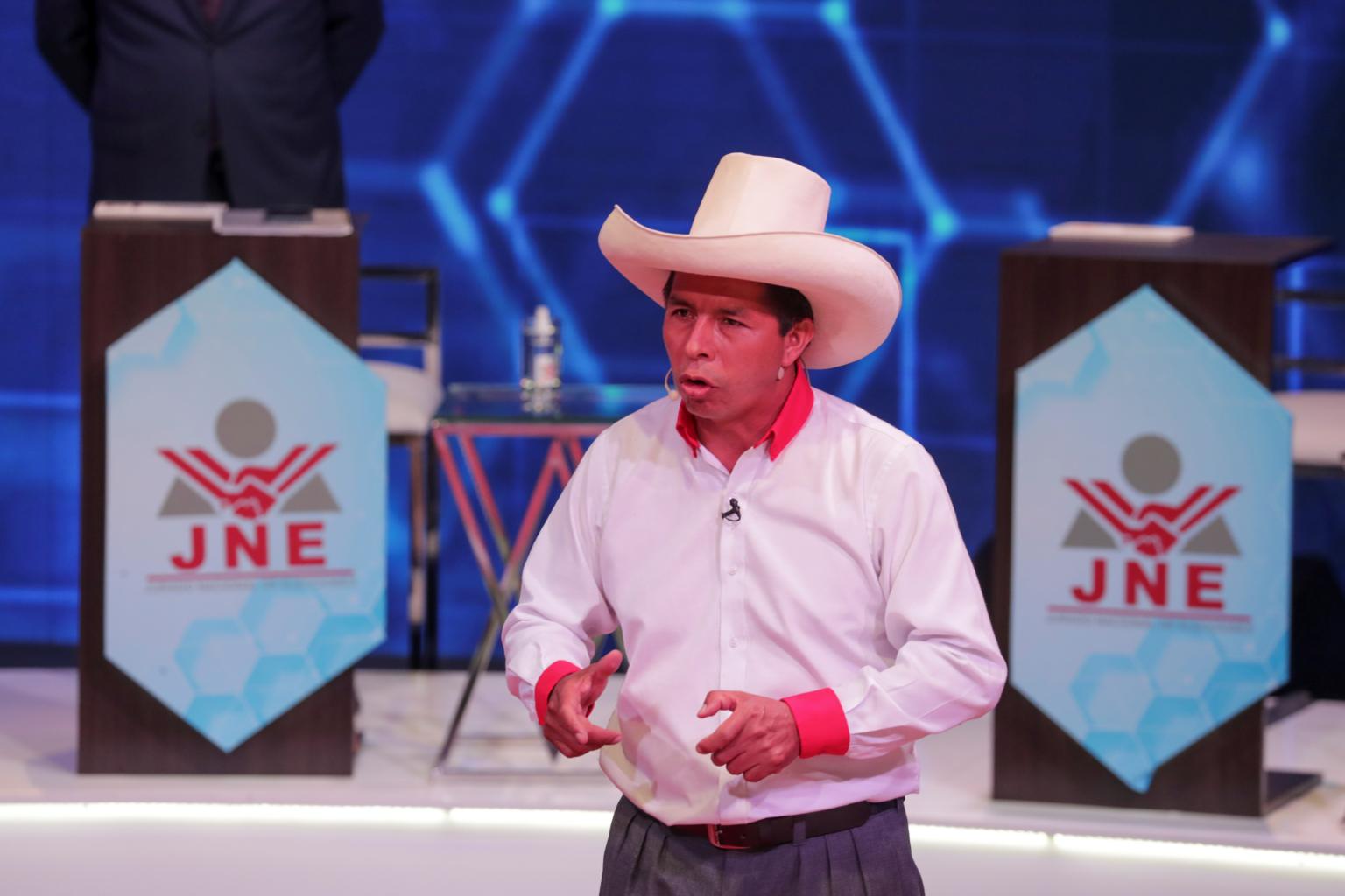 "I am grateful to the Peruvian people for this result," Mr Castillo, who had worn a trademark cowboy hat when he arrived on horseback to vote, told supporters. "I ask for calm until the final results."