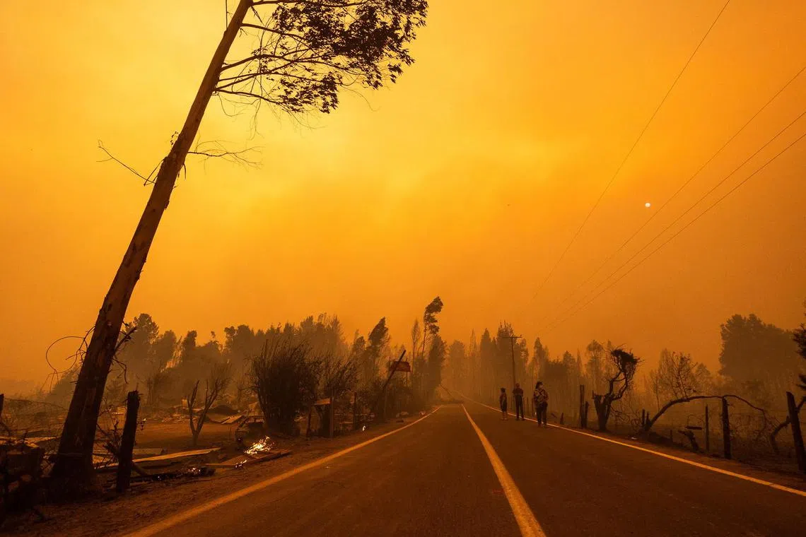 SANTIAGO - Dozens of wildfires blazing though Chile caused the government to extend an emergency order to another region on Saturday, as a scorching summer heatwave complicates efforts to control fires that have claimed at least 22 lives so far.