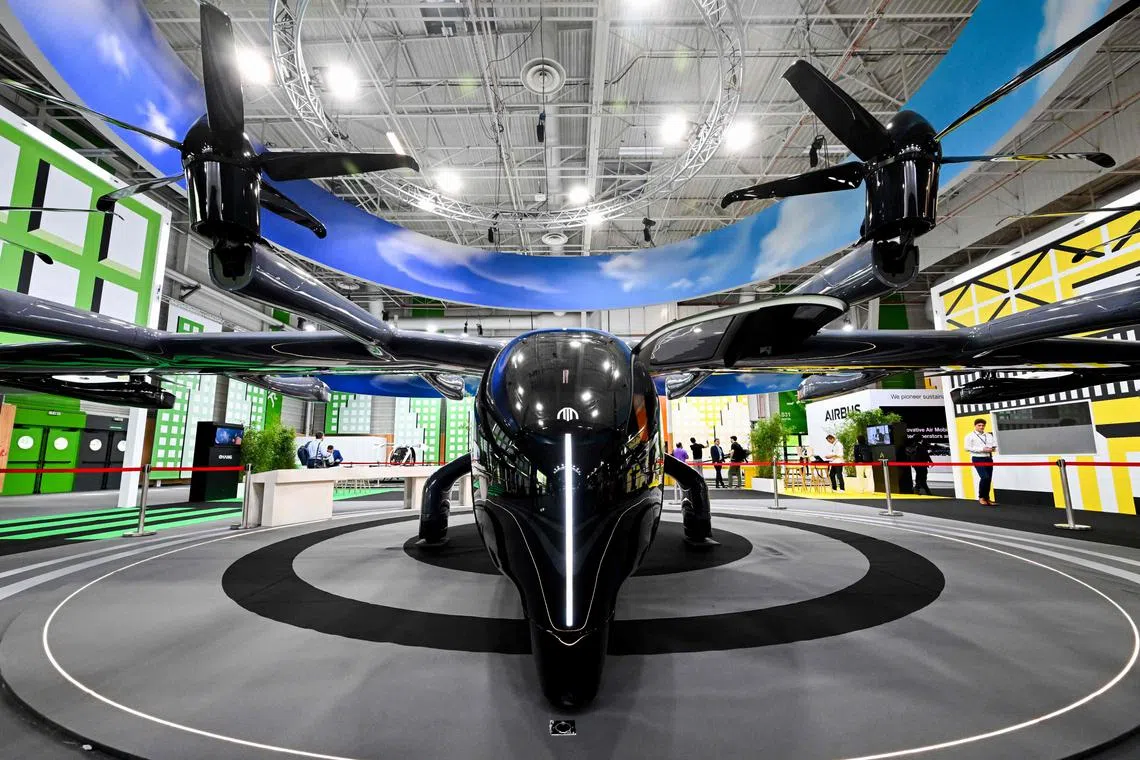 Such futuristic “flying taxis” are among the star turns of this year’s aerospace industry event as they move closer to the day when they can be used by the public.