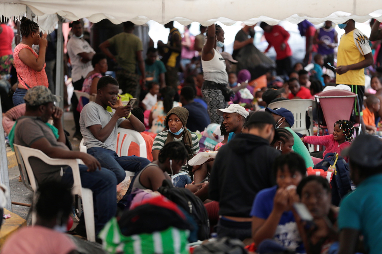 Haitian migrants outside a shelter in Monterrey, Mexico, on Sept 28, 2021, as they try to reach the border with the United States.