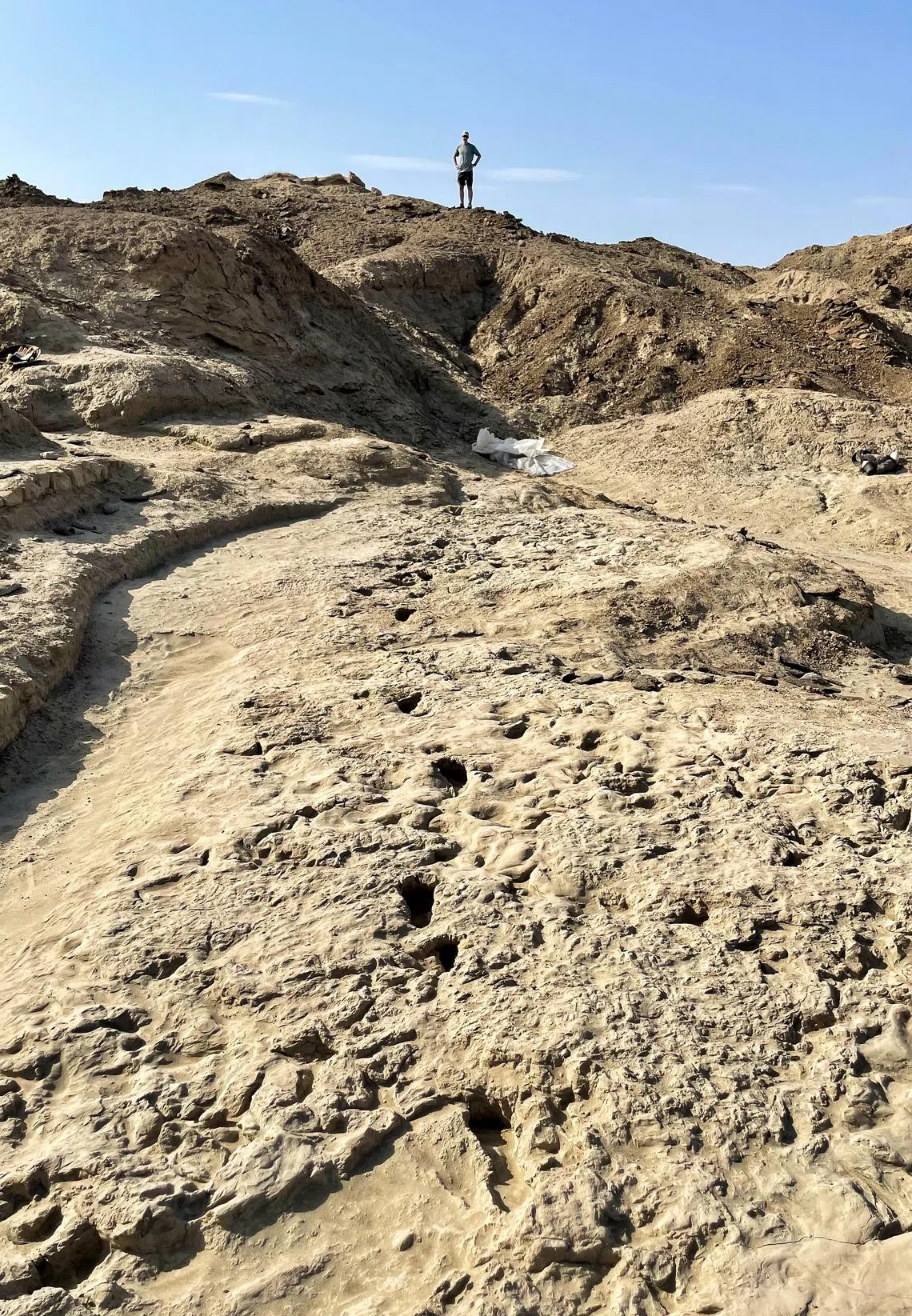 A trackway of footprints in northern Kenya hypothesised to have been created by a Paranthropus boisei individual, seen in this photograph released on Nov 28.