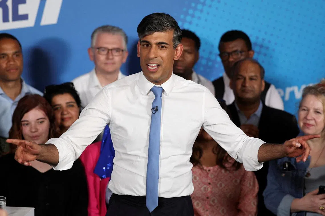British Prime Minister Rishi Sunak speaking at a Conservative general election campaign event in London, on June 24.