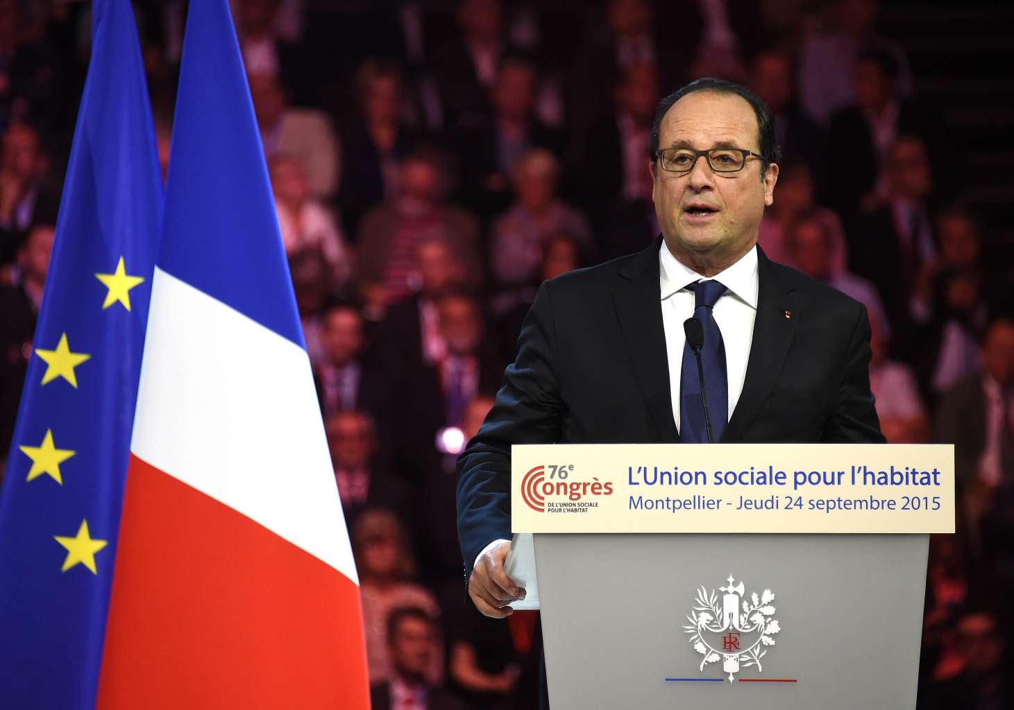French president Francois Hollande delivers a speech during the 76th congress of the Social Union for Housing on Sept 24, 2015 in Montpellier, southern France.