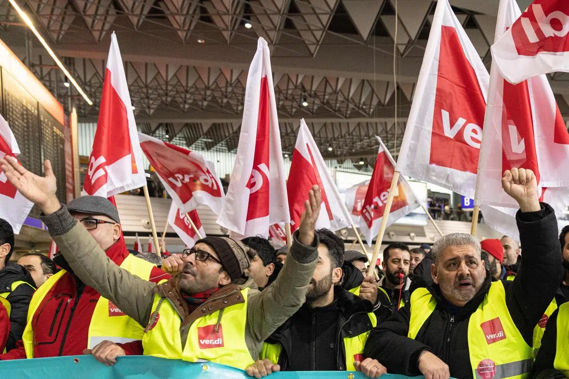 Workers at airports, ports, railways, buses and metro lines throughout much of Europe’s top economy heeded a call by the Verdi and EVG unions for the 24-hour walkout.