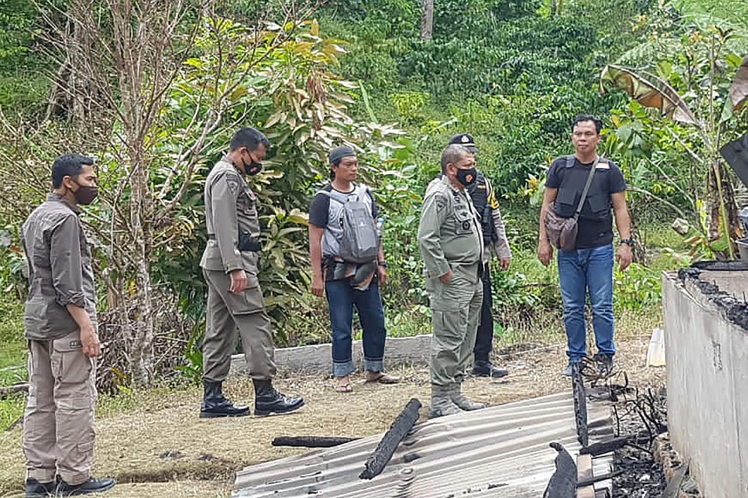 Police inspecting the site of an attack in a remote Christian community of Lembantongoa village, in Palu, Sulawesi, on Nov 28, 2020.