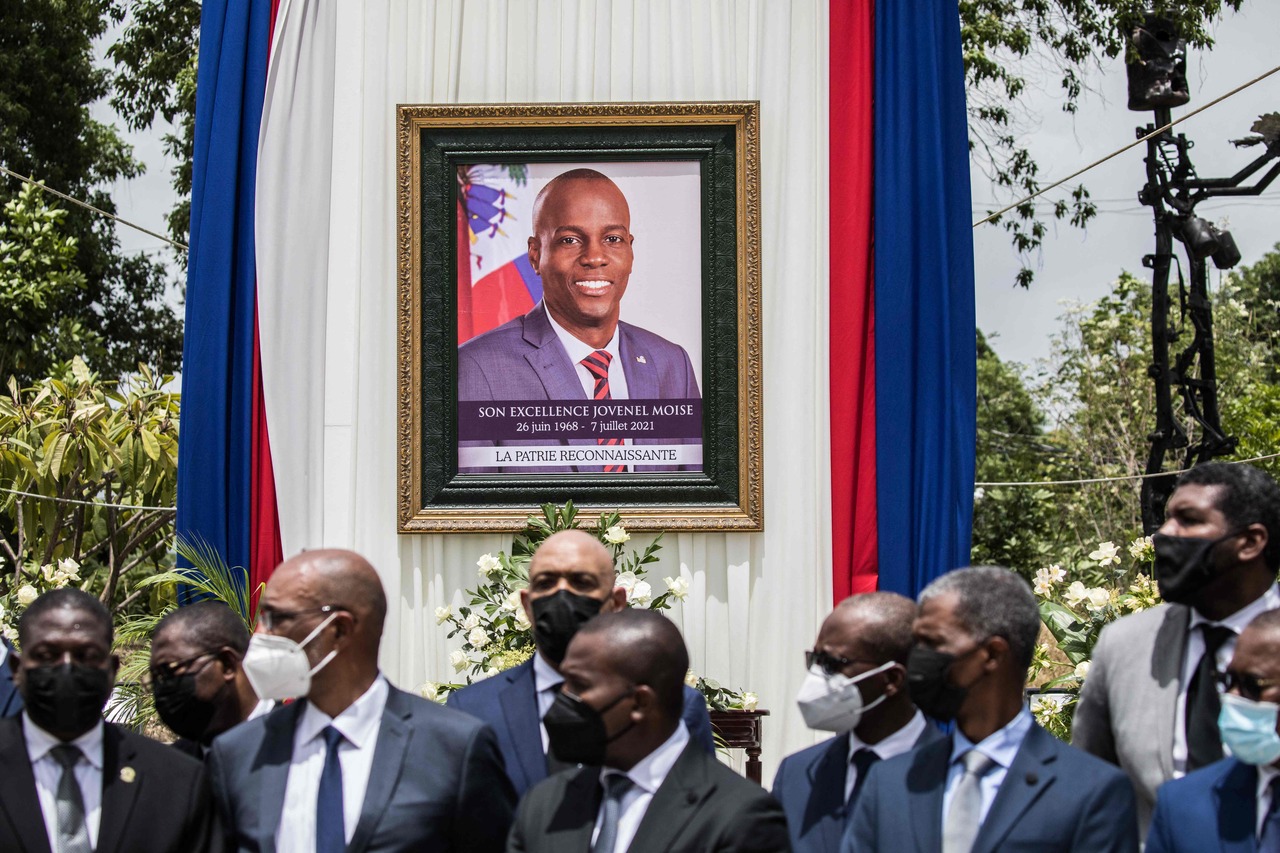 Officials attend a ceremony in honour of late Haitian President Jovenel Moise in Port-au-Prince on July 20, 2021.
