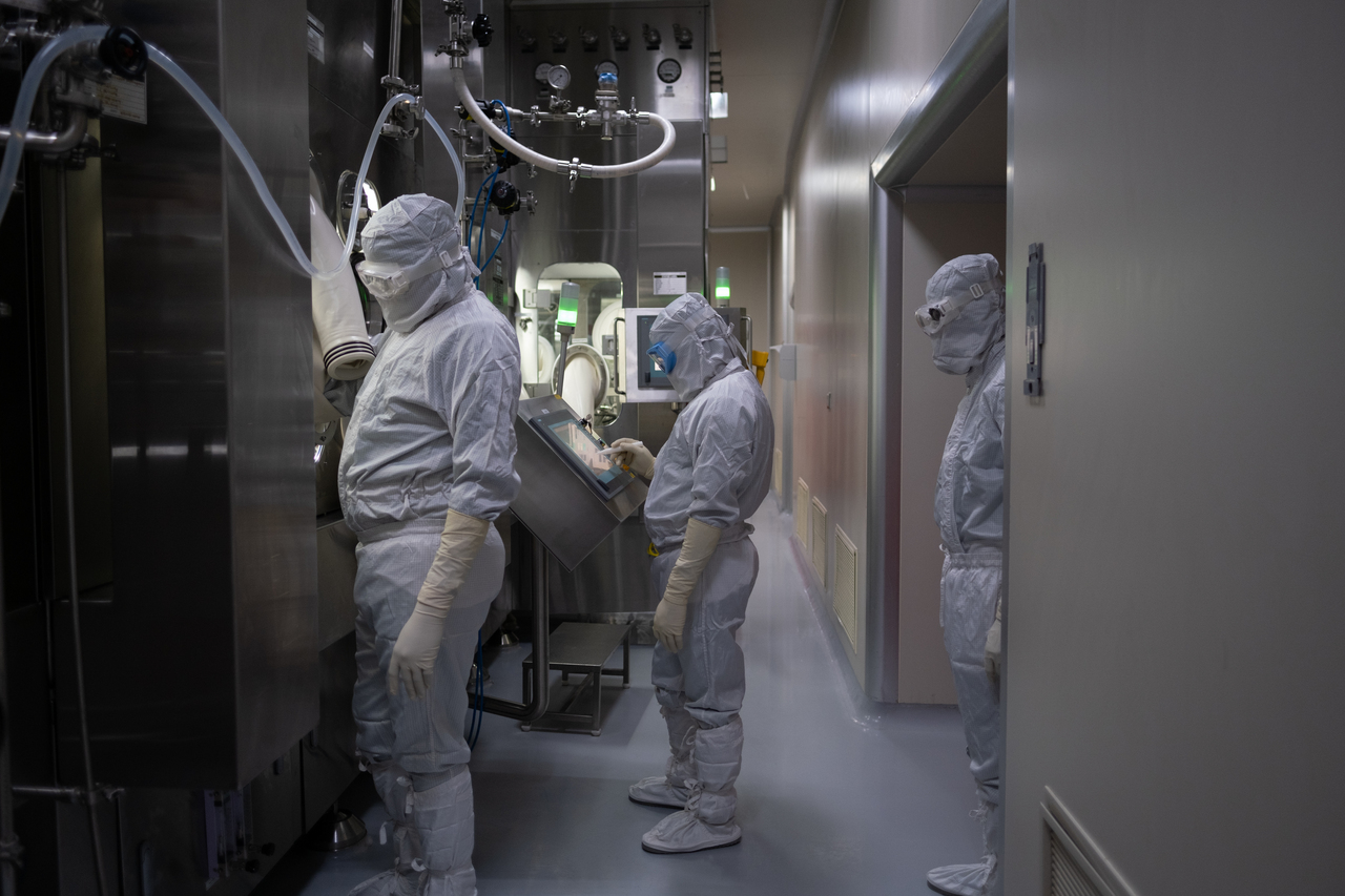 A scientist does a technical check at the Biovac Institute in the Pinelands area of Cape Town, South Africa on Sept 29, 2021.