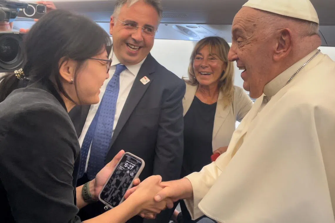The seasoned journalists had stories for the Pope, as it had been nearly a year since the last overseas papal trip. Their number included former Reuters senior Vatican correspondent Philip Pullella, who has accompanied three popes on 140 papal flights so far.