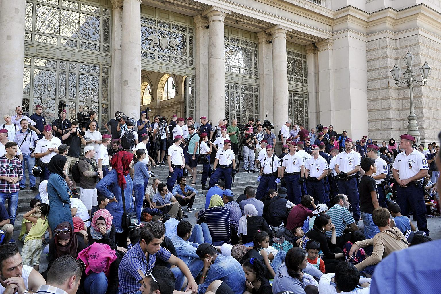 BUDAPEST (AFP) - Hundreds of migrants were left stranded outside Budapest's main railway station on Wednesday after being barred from travelling to Germany by police, as new figures highlighted the massive scale of Europe's refugee crisis.