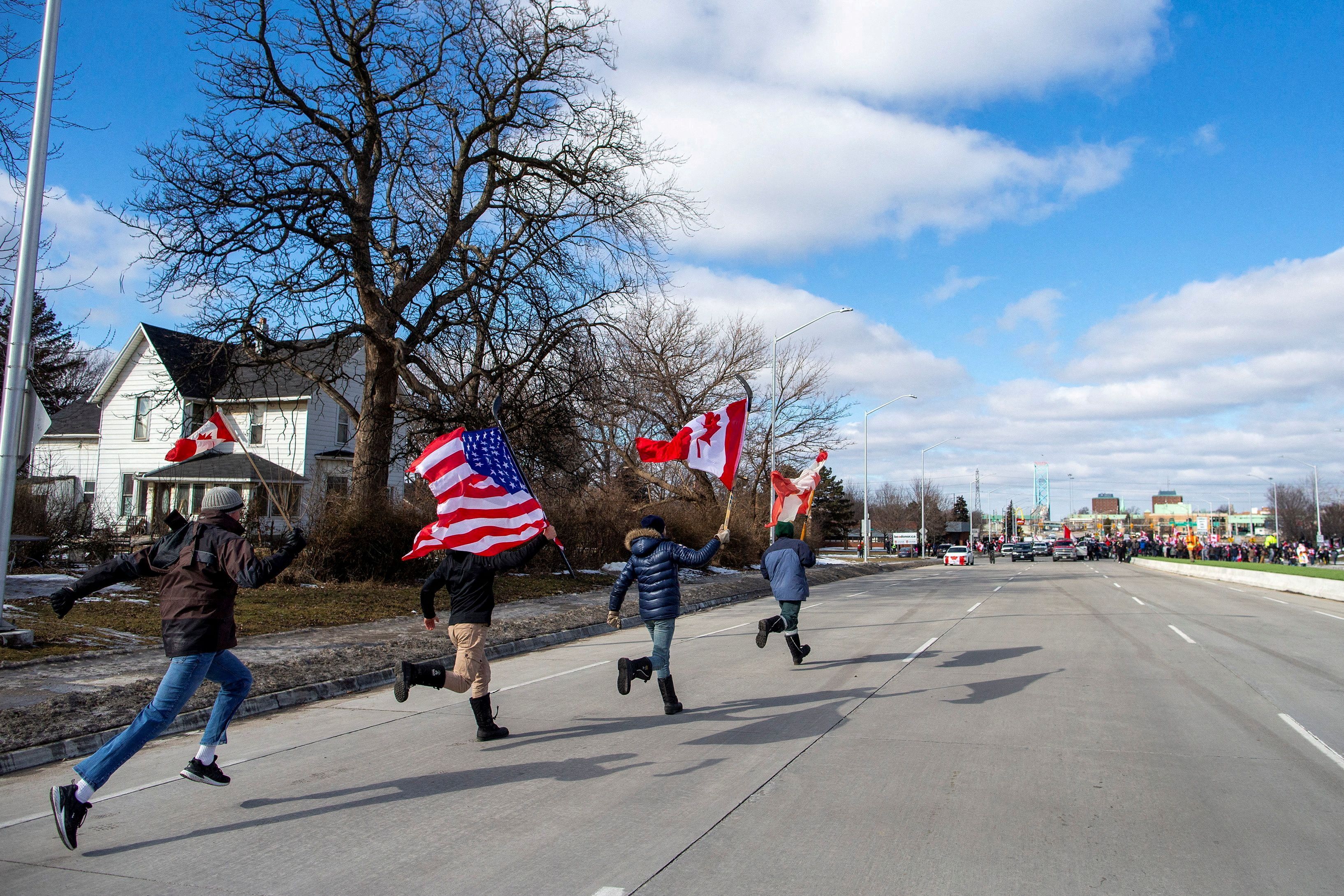 Throughout the day, Canadian police sought to clear many of the trucks blocking the Ambassador Bridge, a vital crossing in Windsor, Ontario, connecting the United States and Canada.