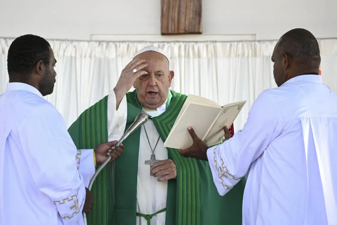 PORT MORESBY, Papua New Guinea - Pope Francis held an open-air mass for tens of thousands of Papua New Guinea’s faithful on Sept 8, imploring this nation “at the edge of the world” to draw closer to the Catholic faith.