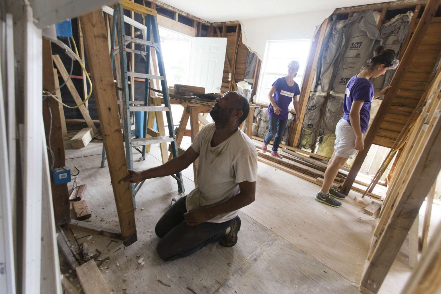 Volunteer coordinator Darren McKinney working on a hurricane-damaged home in the Lower Ninth Ward of New Orleans Aug 17, 2015. Mr McKinney works for lowernine.org, an organisation aiding residents rebuild homes.