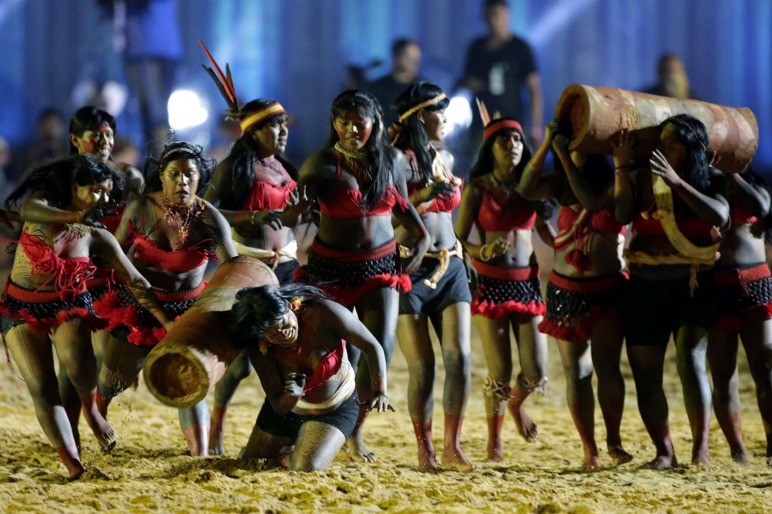 Brazilian indigenous of Kaypo ethnic people participate in traditional fire ceremony at the opening of the inaugural World Indigenous Games in Palmas, in northern Brazil on Oct 22, 2015.