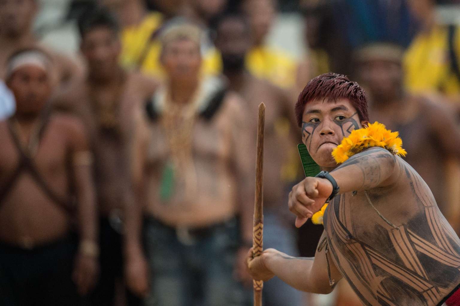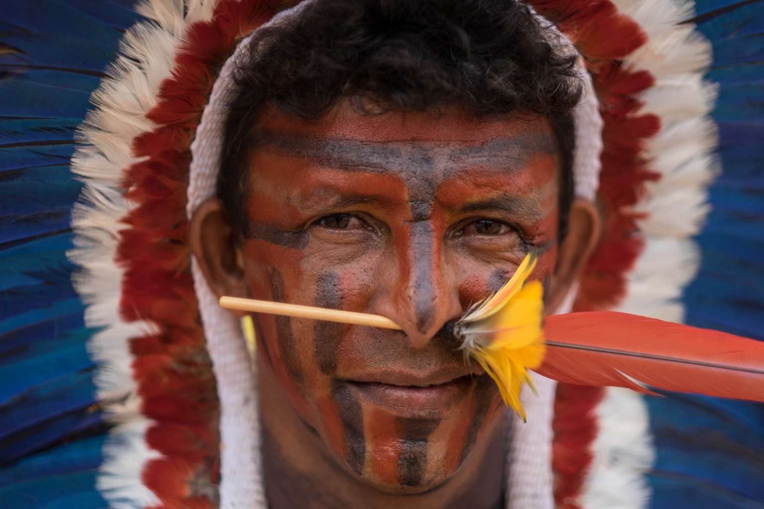 A Brazilian indigenous native poses during the first World Indigenous Games in Palmas, Tocantins, Brazil on Oct 25, 2015.