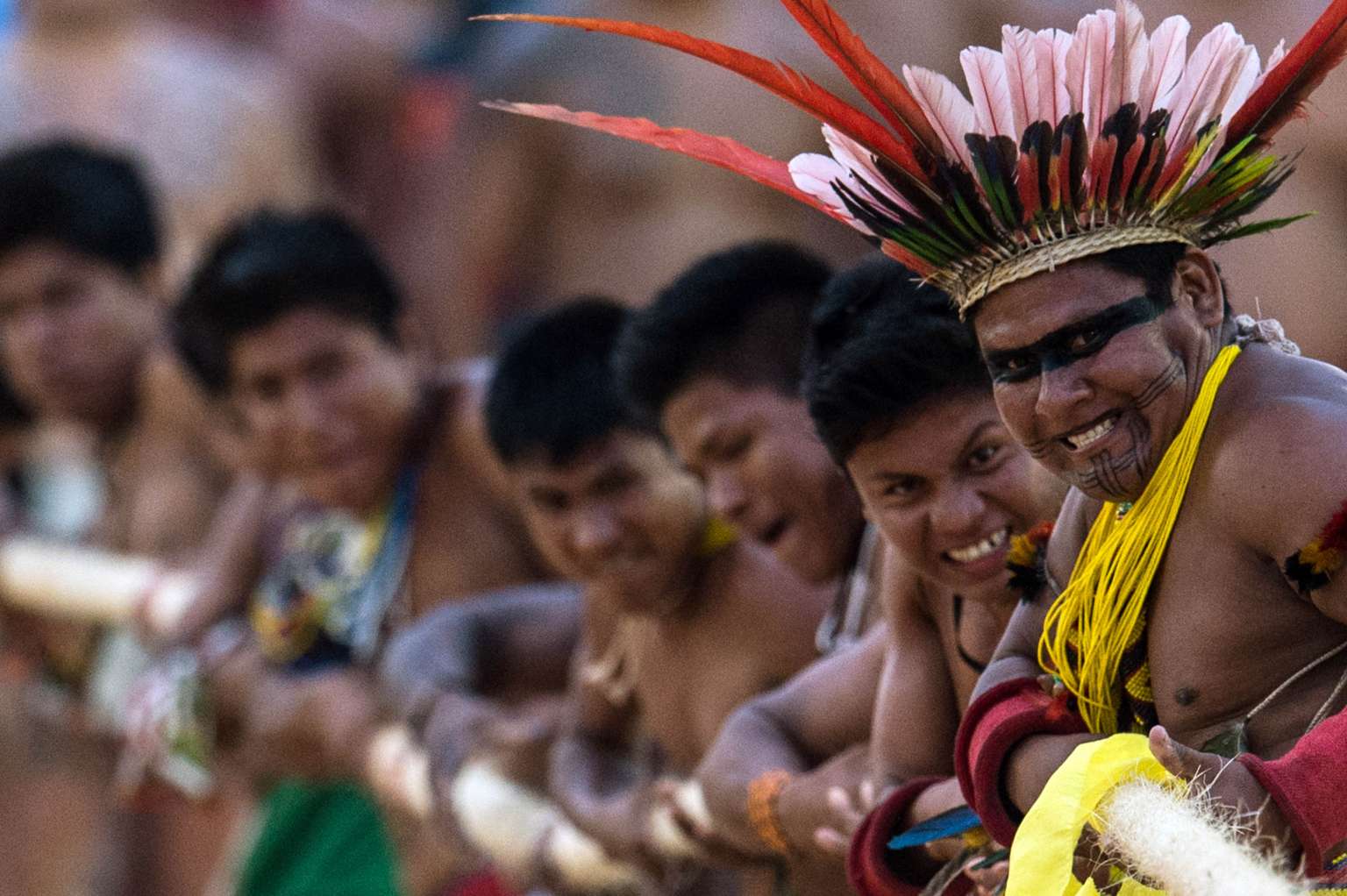 Brazilian indigenous natives participate in the tug-of-war competition of the first World Indigenous Games in Palmas, Tocantins, Brazil on Oct 25, 2015.